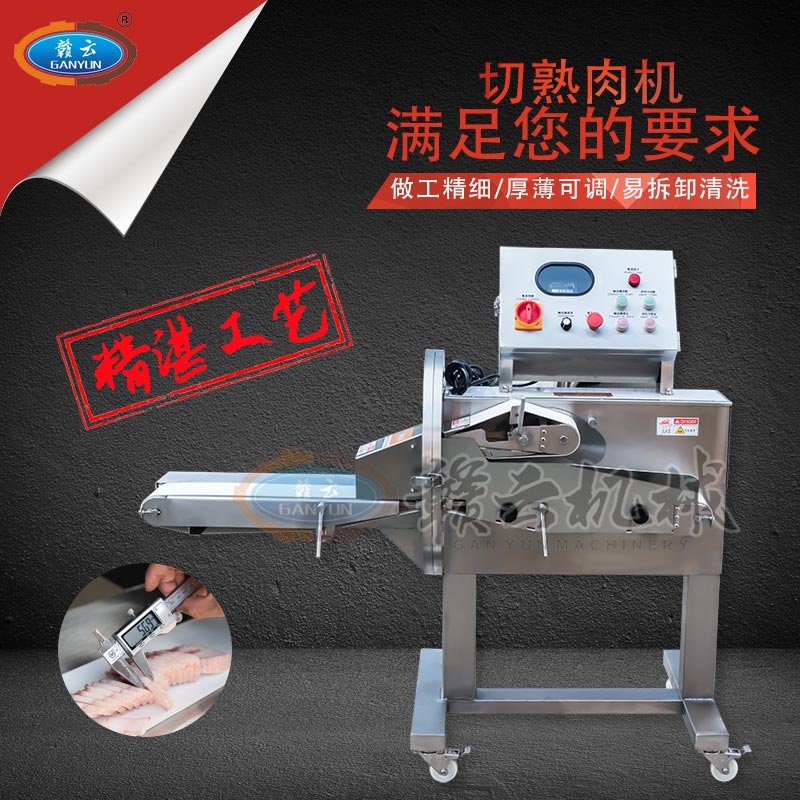 簡(jiǎn)介:GYSQ-120D切熟肉機(jī),專業(yè)切熟肉機(jī)可切扣肉、鹵豬耳朵、五花肉等,通過(guò)調(diào)整輸送帶的速度控制切割厚度,輸送帶越快厚度越厚,越慢越薄。適用于食堂、中央廚房、餐飲配送中心、肉聯(lián)廠、大型酒店等。變頻電控箱,通過(guò)調(diào)節(jié)輸送帶速度控制切割厚度,按鍵防水設(shè)計(jì),可拆卸輸送帶。優(yōu)質(zhì)刀片,杜絕卷刃。