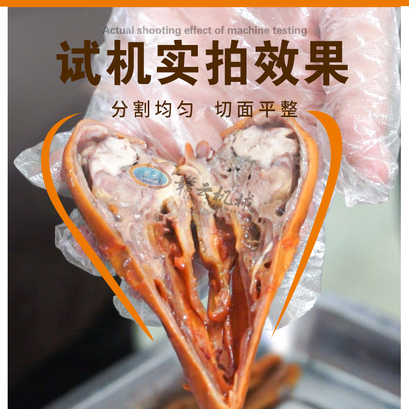 簡介:"贛云雙路連續(xù)式分半機(jī),機(jī)器采用不銹鋼材質(zhì),輸送帶雙通道設(shè)計,機(jī)器擁有自動定位物料對中夾持功能,防止物料跑偏,切出來的物料兩半均勻,效果好。機(jī)器采用人性化設(shè)計,無論是入料和操作面板,無需要經(jīng)驗都能輕松駕馭。機(jī)器適用于雞爪、鴨頭、鵝頭、海參、魷魚頭、胡蘿卜、豬喉等對稱分半加工,切割效率高,分半均勻,切面平整效果好。