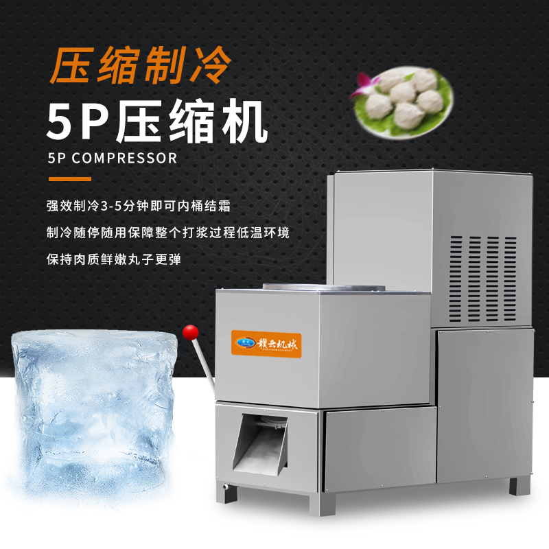 配備5P大馬力壓縮機(jī),3-5分鐘即可實(shí)現(xiàn)內(nèi)桶結(jié)霜,制冷效果隨停隨用。全程低溫環(huán)境有效保持肉質(zhì)鮮嫩,避免打漿過(guò)程中原料升溫變質(zhì),讓成品丸子更加Q彈有嚼勁,更好的提升產(chǎn)品品質(zhì)。