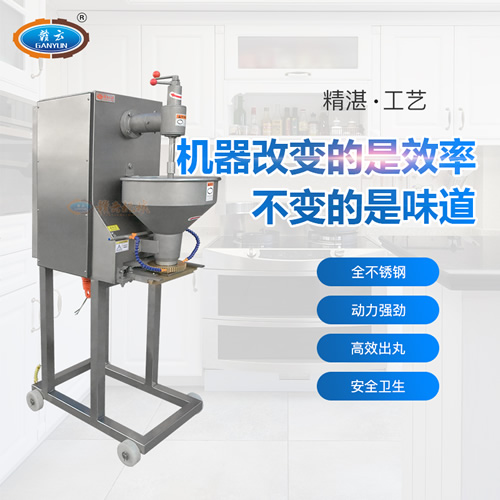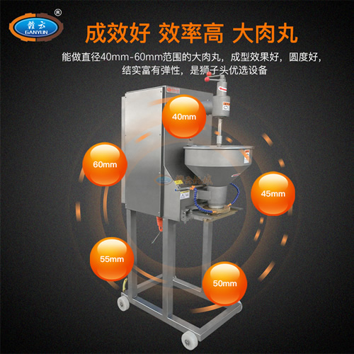 傳統(tǒng)手工制作大肉丸,工人制作速度慢產(chǎn)量低,耗費大量時間,且存在大小不均、形狀不規(guī)則、勞動強度大等問題。采用贛云GY-SZT-190BP變頻成型機后: