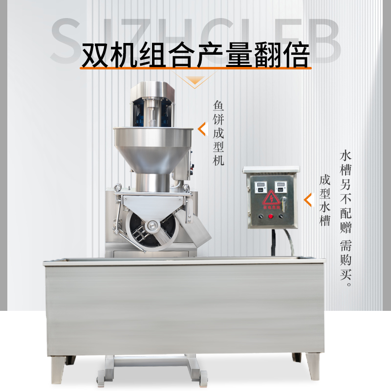 對于產(chǎn)量需求較大的客戶,建議采用雙機(jī)組合配置。兩臺成型機(jī)可同時工作,產(chǎn)量輕松翻倍至800KG/H。設(shè)備可共用水煮定型水槽,節(jié)省空間和能源。水槽需另行選配,采用不銹鋼材質(zhì),配備加熱和溫控系統(tǒng),確保魚餅熟化效果一致。這種組合模式是食品加工廠的廣泛選擇。