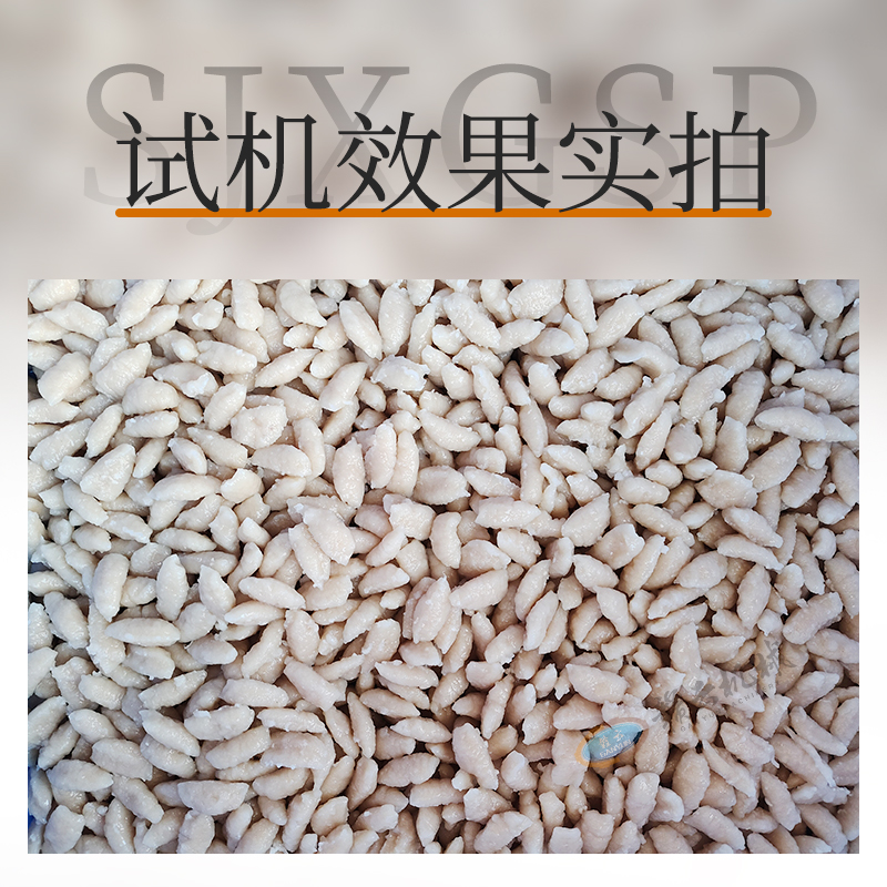 設(shè)備出廠前均經(jīng)過(guò)嚴(yán)格測(cè)試,成型效果實(shí)拍展示:成品顆粒飽滿、表面光滑、彈性十足,口感好。