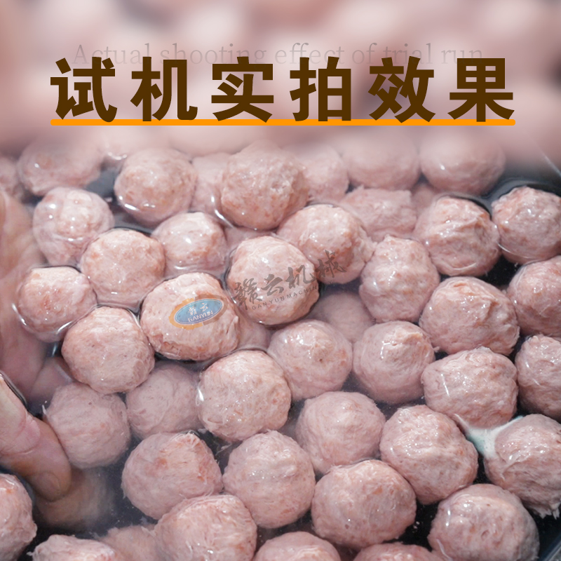 實測試機數(shù)據(jù)顯示,設(shè)備在連續(xù)工作8小時狀態(tài)下,成型合格率達(dá)到99.5%以上。切刀每分鐘切割300-600次,確保每個丸子重量誤差小。漿料擠出過程勻速穩(wěn)定,無氣泡、無斷層,成品入鍋后浮水均勻,彈性測試達(dá)標(biāo)準(zhǔn)。多種規(guī)則尺寸、品種不同實心肉丸,均能保持完整形態(tài)。